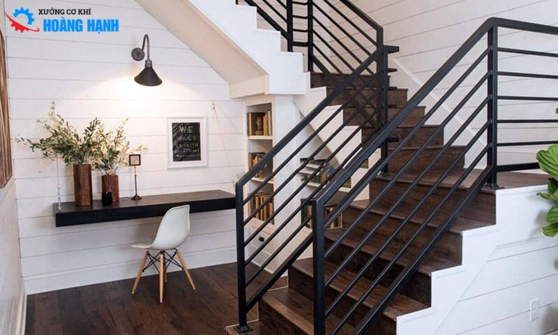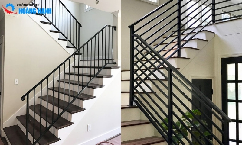 Đây là lựa chọn tối ưu cho những không gian sống theo lối kiến trúc hiện đại, nhà phố, chung cư. Đặc điểm của phong cách này là sử dụng các thanh sắt hộp, sắt la hoặc các thanh sắt đặc có đường nét thẳng, song song hoặc đan xen một cách tối giản. Màu sắc chủ đạo thường là đen, trắng, ghi xám để tạo sự tinh tế, mạnh mẽ và không bao giờ lỗi mốt. Mẫu tay vịn cầu thang sắt đơn giản này không chỉ đẹp mà còn giúp không gian trông thoáng đãng và rộng rãi hơn.