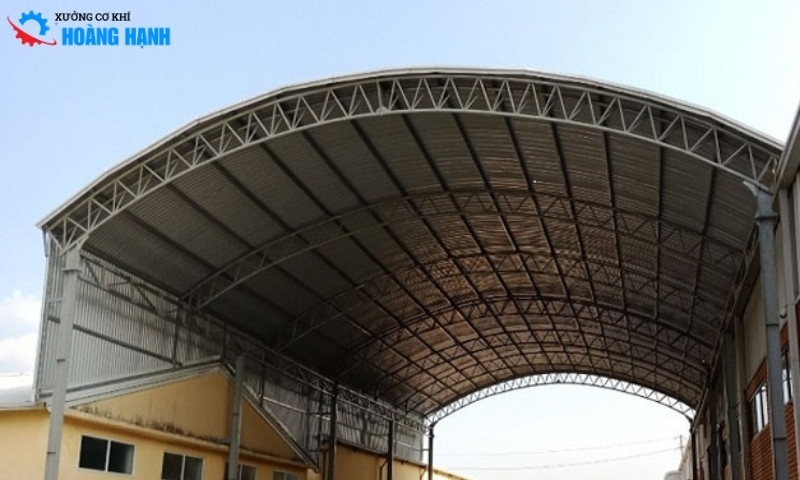 Các thiết kế mái tôn dạng vòm cong mềm mại đang ngày càng được yêu thích bởi vẻ đẹp độc đáo, hiện đại. Mái vòm không chỉ tạo điểm nhấn kiến trúc mà còn giúp không gian bên dưới trông cao và thoáng đãng hơn. Kiểu mái này đặc biệt phù hợp cho các sân thượng được cải tạo thành khu vực giải trí, quán cà phê sân thượng hoặc khu vườn trên cao.